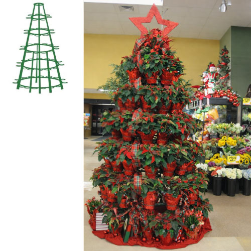 This Full Round Tree is made as a merchandiser to sell plants. The rows are 16″ apart, giving you 4 extra inches per row of empty spacing for clearance. Our standard racks have 12 inches between each row.